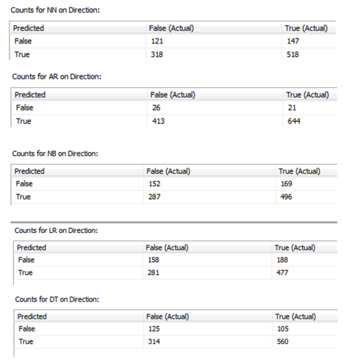 Different data mining models were then trained using part of the dataset and tested on the remaining portion. The models received only financial ratios as input and attempted to predict whether the stock price would go up or down. Their predictions were then compared with actual market outcomes.